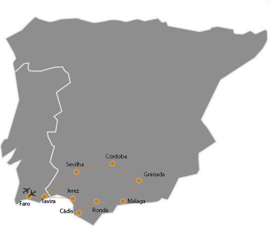 Entdecken Sie auf den Spuren der Mauren die Schönheit Andalusiens und lassen Sie sich von der Farbenvielfalt der Algarve überwältigen. Diese Reise vom Atlantik zum Mittelmeer ist auch eine kleine Zeitreise, mit vielen Gemeinsamkeiten der beiden Staaten. Die damaligen Eindringlinge waren immer dieselben, ob Iberer, Phönizier, Kelten, Römer und dann schließlich die Mauren im Jahre 711, die den heutigen portugiesischen Teil Lusitanien nannten und die das Reich des Al-Andalus unter der Herrschaft des Emirats von Cordoba verwalteten.